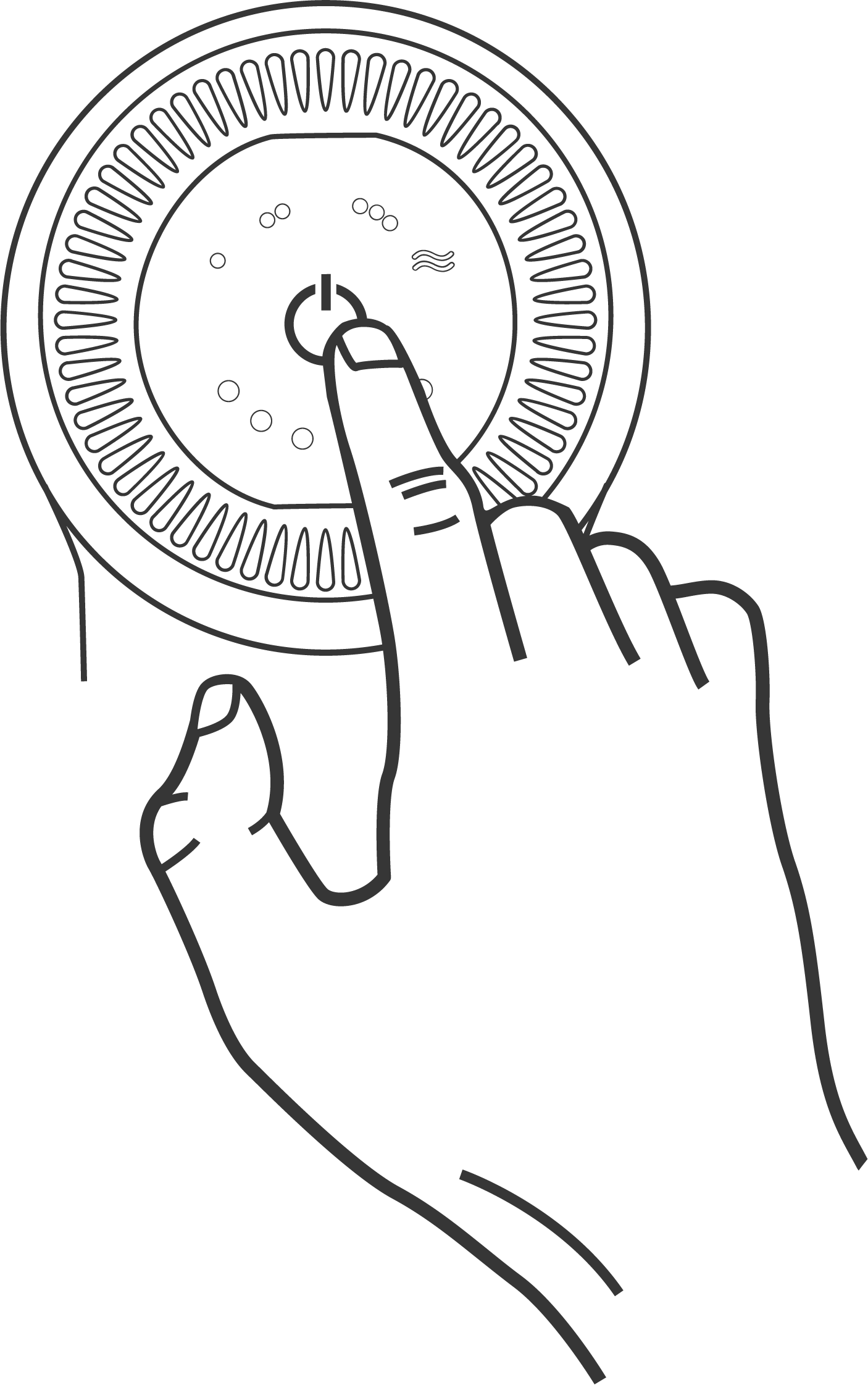 The LEDs above the button will indicate the current mode, and the pressure ring will glow to show it is active.